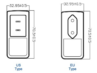 外観寸法 | US Plug / JP Plug:L 72 x W 34 x H 59 (mm) EU Plug:L 72 x W 34 x H 80 (mm) UK Plug:L 72 x W 50 x H 71 (mm) AU Plug:L 72 x W 40 x H 68 (mm) CN Plug:L 72 x W 34 x H 58 (mm) |