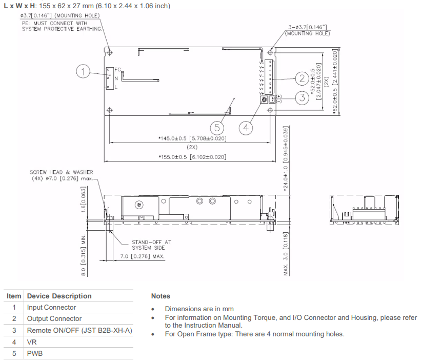 | 寸法 | オープンフレーム | 155 x 62 x 27mm (6.10 x 2.44 x 1.06 inch) |